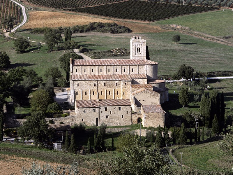 Incastonata sulla propaggine Nord-ovest del colle sul quale sorge il borgo medievale di Castelnuovo dell'Abate, un tempo fortilizio dell'Abbazia di S.Antimo, la Colombina si affaccia sulla vallata nella quale ammirare la celebre Abbazia, circondata da colline ricche di olivi, viti e cipressi.